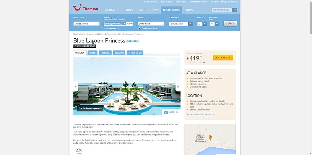 H διαφήμιση του ξενοδοχείου στο site της Τhomson
